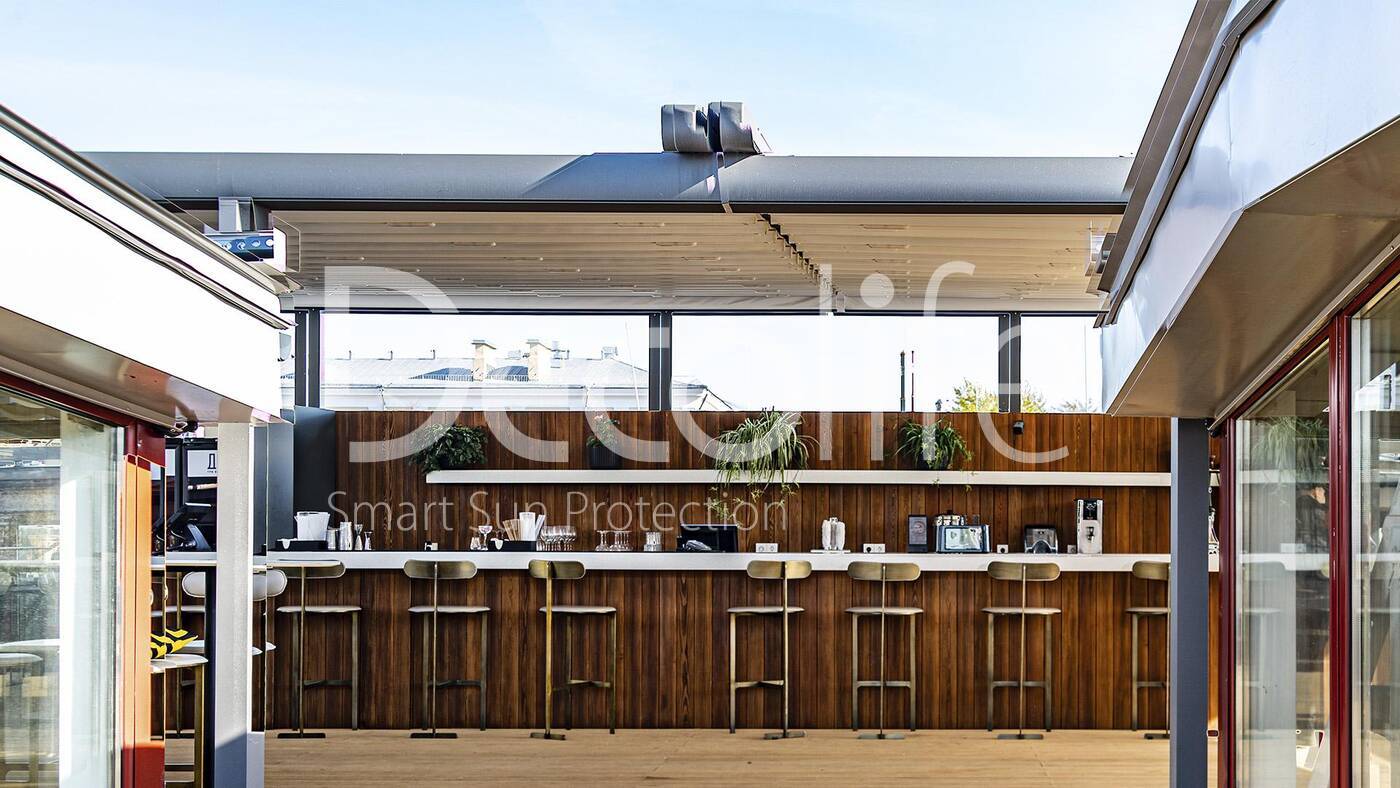 Главная / Наши работы / Тентовая пергола Decolife Solo Basic "Три вокзала. Депо", ул. Новорязанская 23, Фудкорт
