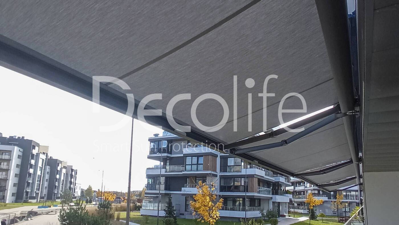 Главная / Наши работы / Маркиза кассетная Decolife G500 а.г. Ратомка, ЖК Пирс