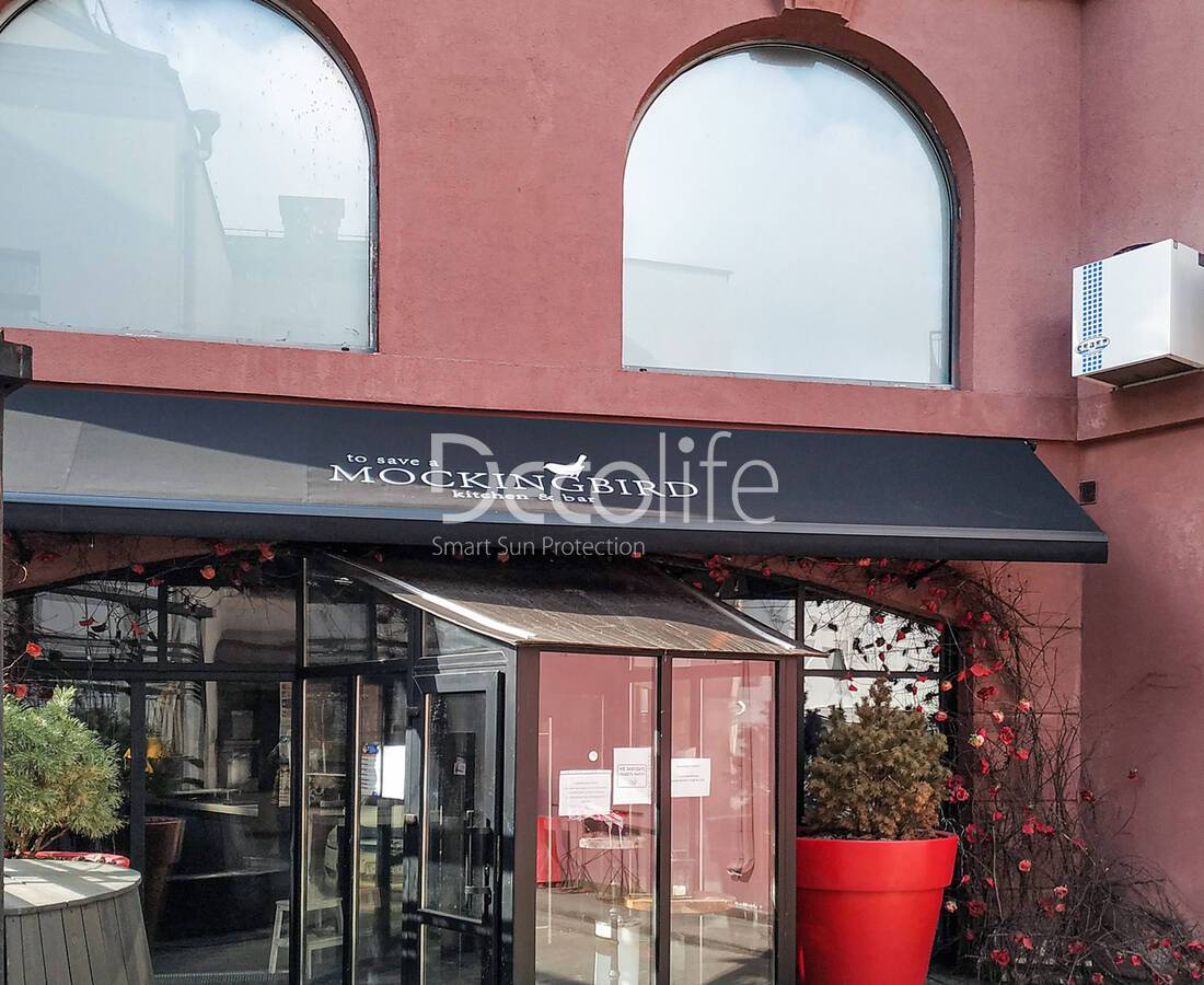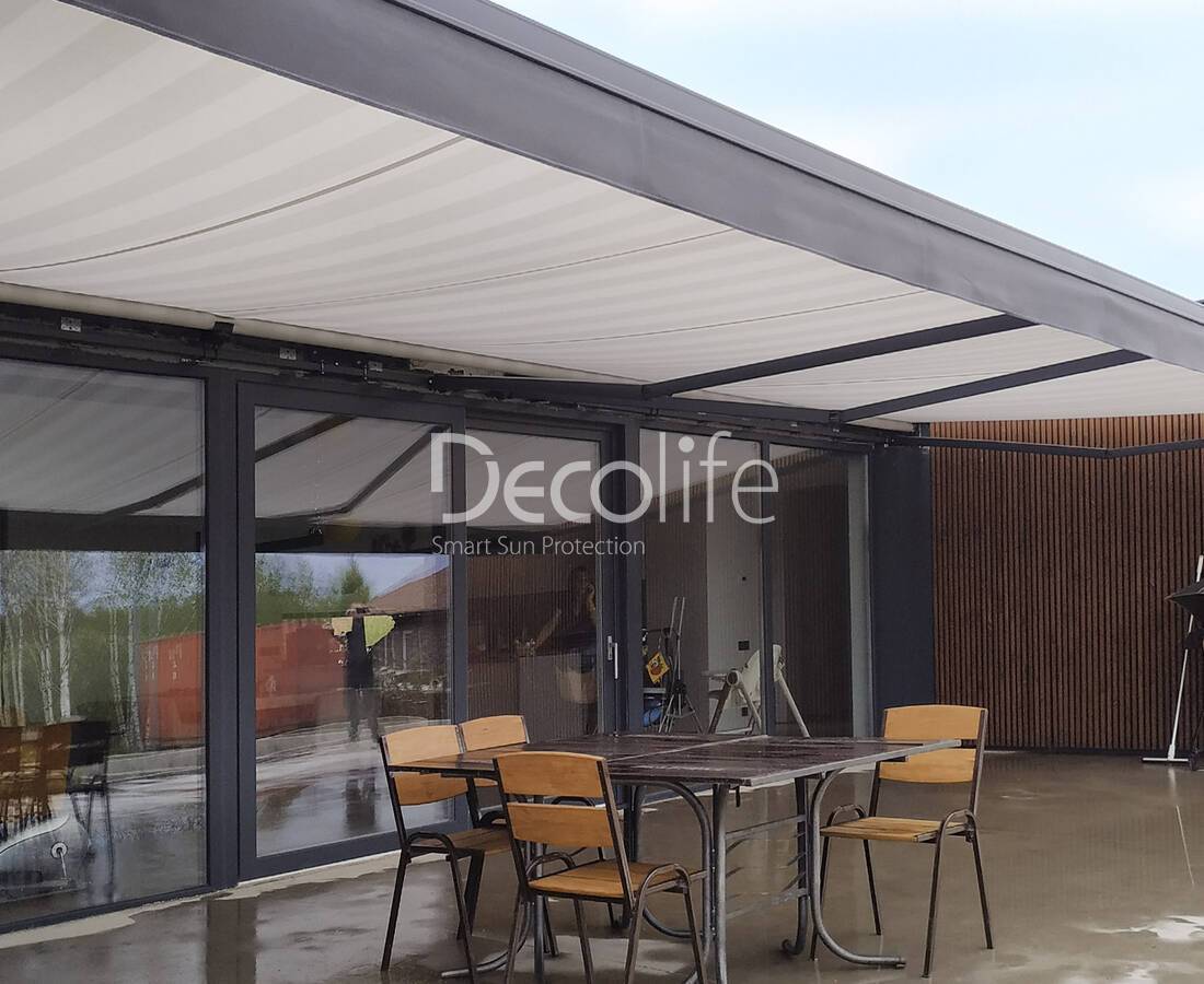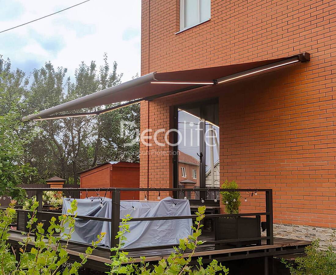 Маркиза открытая Decolife G90, реализован партнером ООО "Европейские Солнцезащитные Системы" - кофейня "Сладкий домик"