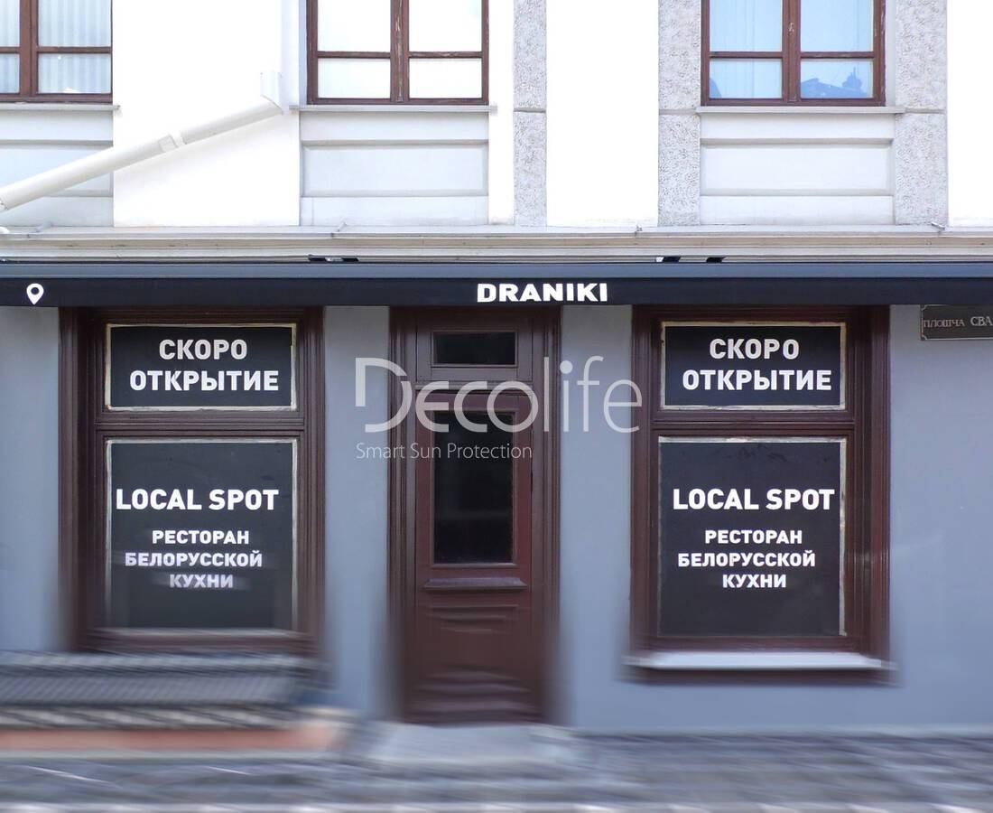 Выдвижная маркиза G200 с флексо печатью для кафе и ресторана - г. Минск, ресторан "Draniki"