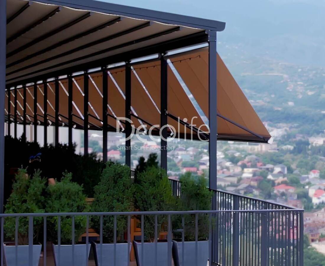 Тентовая пергола Decolife Basic&Pro New c маркизами G400, реализовано партнером "TENT VERTEX" - г. Алматы, Парк Кок-тобе