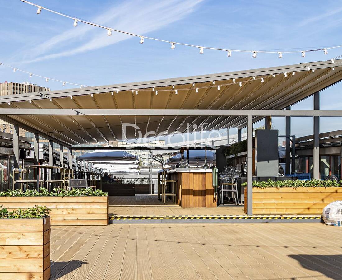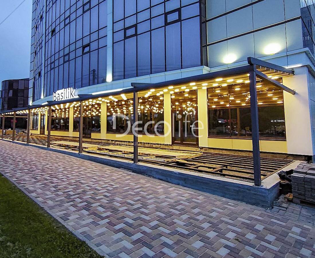 Пергола тентовая Decolife Project Light + Вертикальная система Zip 100 - реализовано партнером "ООО Люкс Террас" - г. Красногорск
