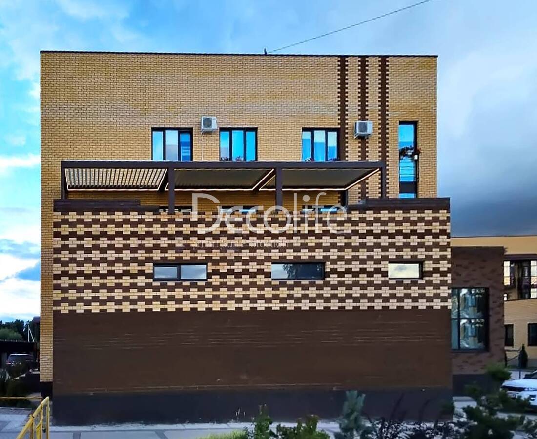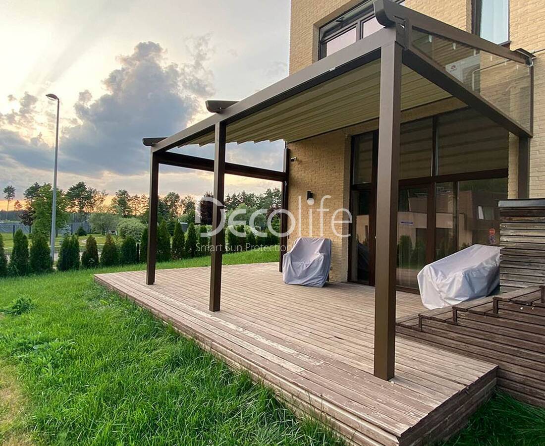 Пергола Decolife B600 PIR + Фасадные жалюзи FZ-44 + Гильотинное W500 и раздвижное S200 остекление - г. Минск