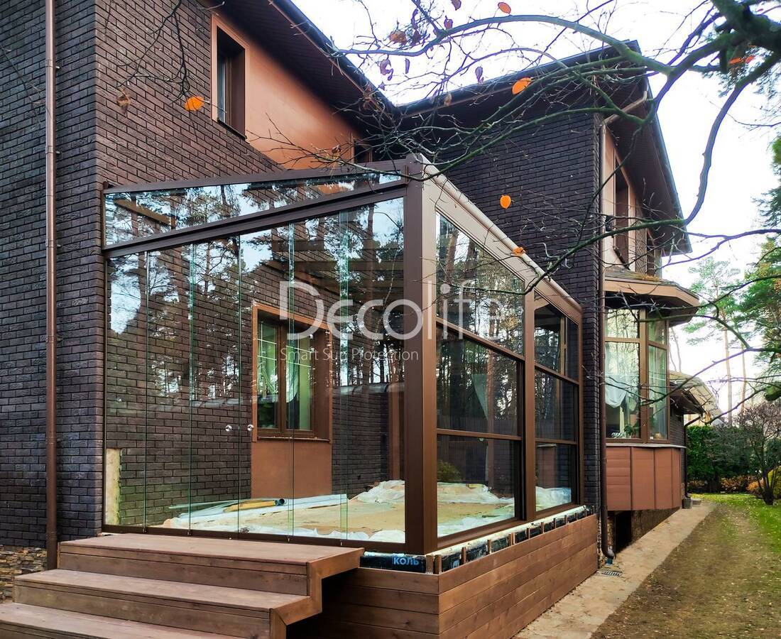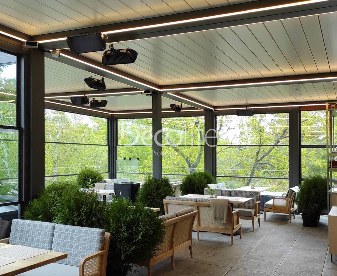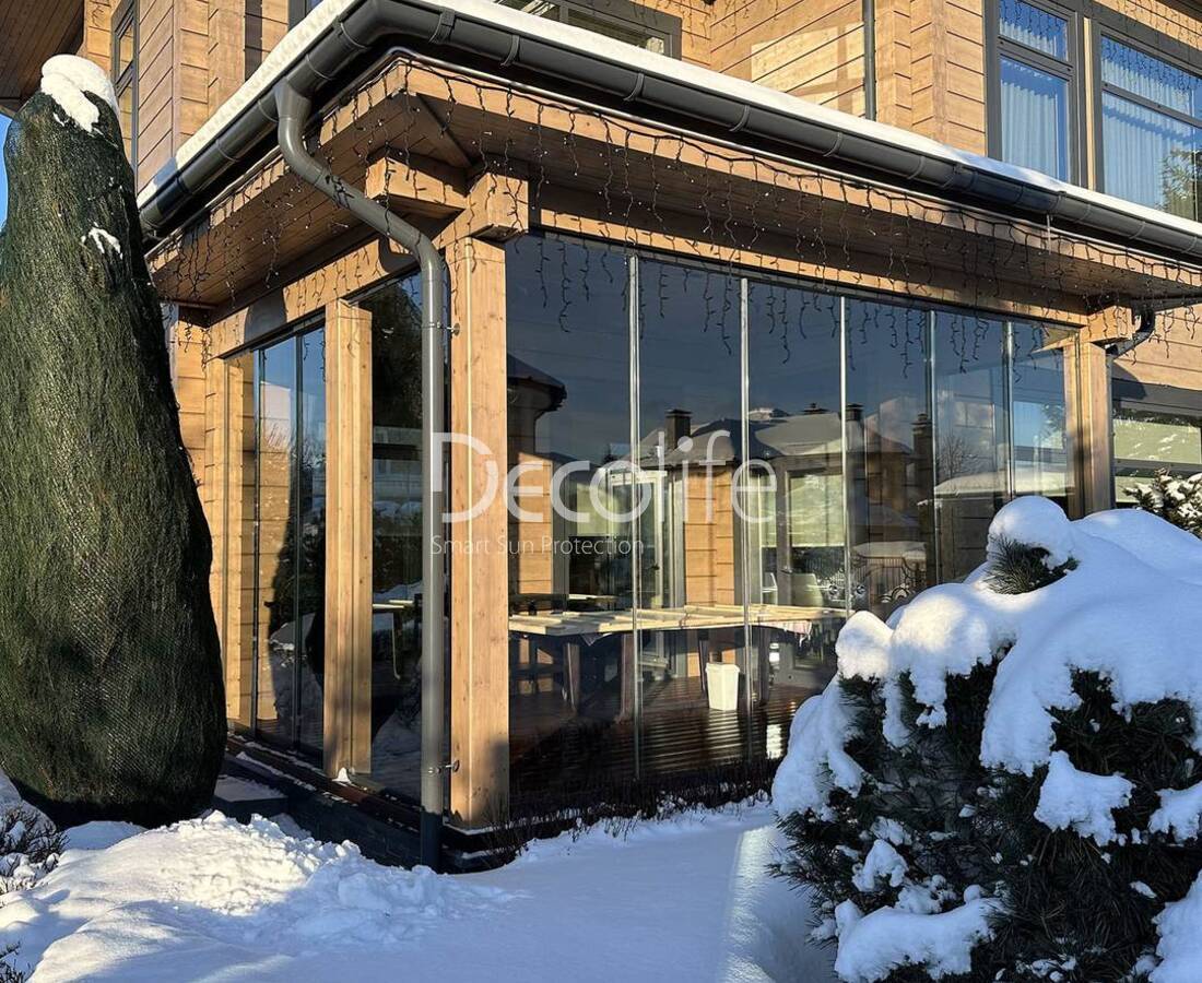 Пергола тентовая Decolife Project Light + Подъемное остекление W500 - реализовано партнером "ООО Люкс Террас" - Московская обл.