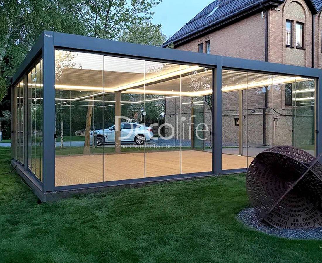 Пергола Decolife Bioclimatic B500-25П + Раздвижное остекление S500, реализовано партнером "ООО Люкс Террас" - г. Москва